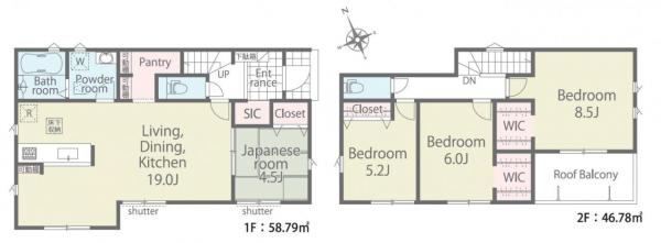 玄関にはSIC、キッチンには大容量パントリー、2階洋室にはWIC2つなど、